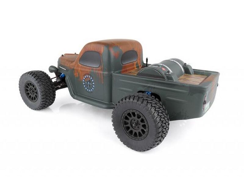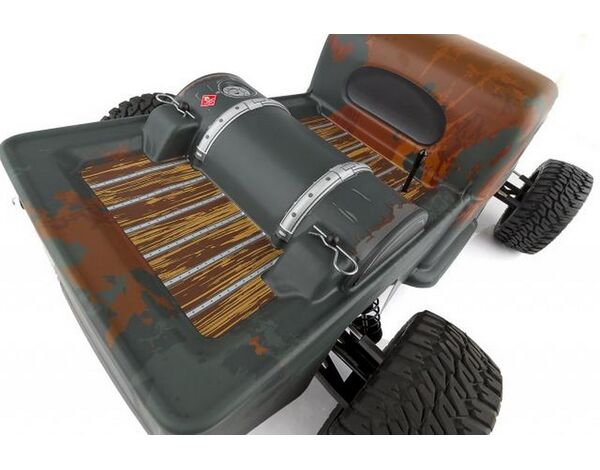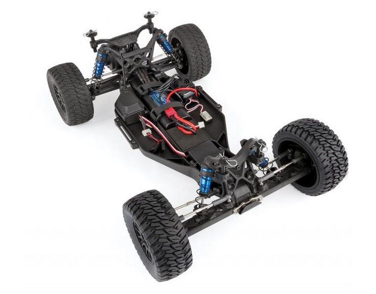 The suspension also received an upgrade with the addition of adjustable blue anodized aluminum V2 12mm big bore coil-over shocks. The gearbox now comes with a heavy-duty sealed-gear differential and externally adjustable V2 slipper clutch. 86mm CVA driveshafts increase traction and chassis support. Hex-drive wheels come standard on the Trophy Rat with realistic off road wheels and tires to keep the truck gripping the ground.