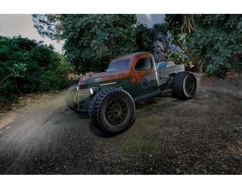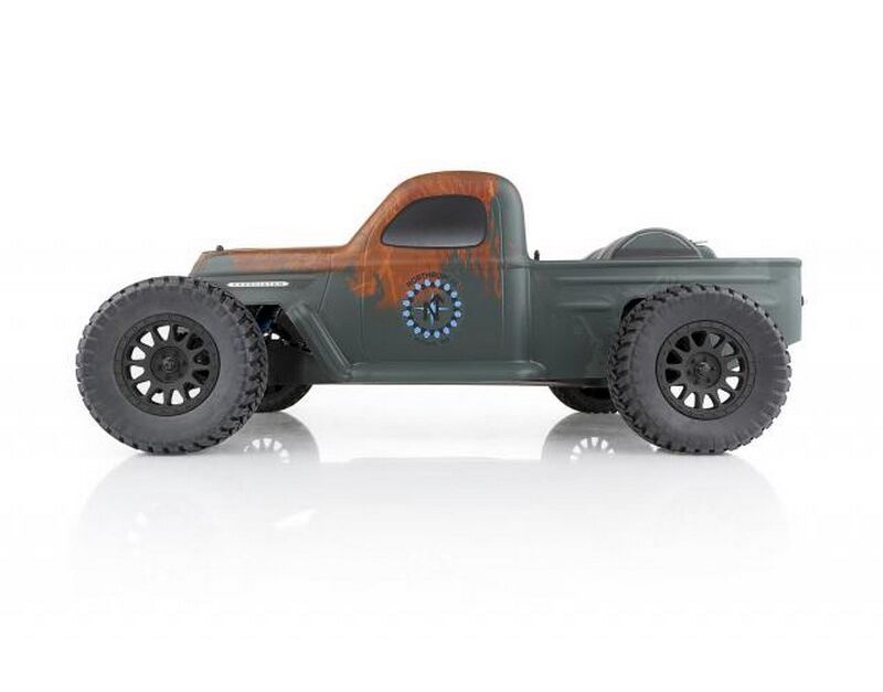 The truck features a water-resistant high-power Reedy brushless speed control and 3300kV brushless motor, a 2.4GHz 2-channel radio system as well as our ALL NEW DVC (Dynamic Vehicle Control) receiver unit with built-in adjustable digital gyro which allows vehicle stability to be adjusted to flow with the terrain. A Reedy metal-gear digital high-torque servo and LED lights front and rear round out the Trophy Rat!