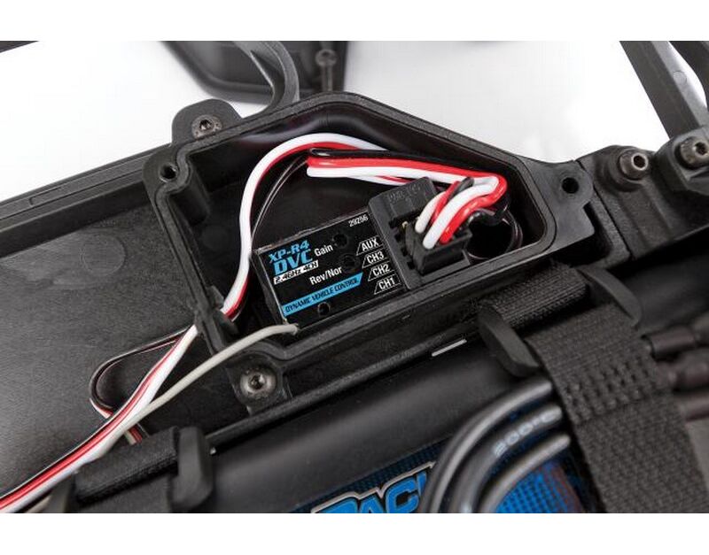 2.4GHz 2-channel radio with new DVC (Dynamic Vehicle Control) receiver; featuring built-in adjustable gyro