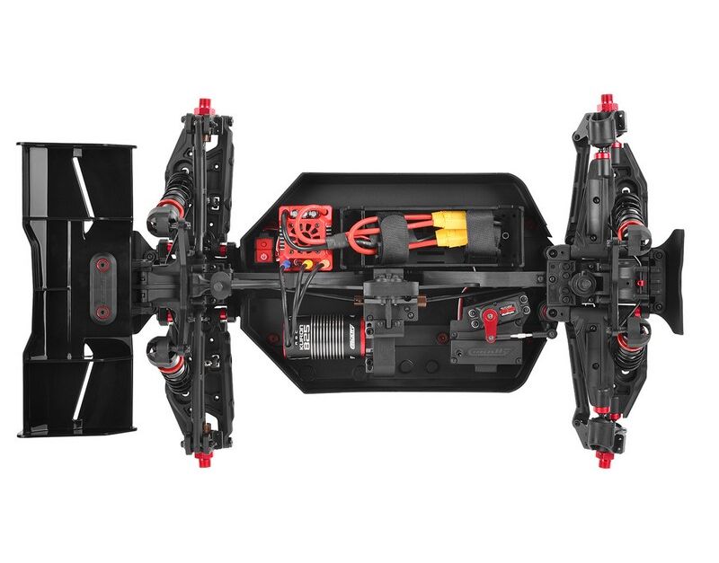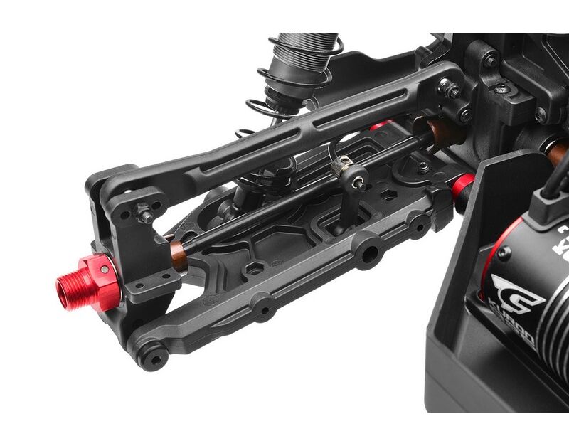-Massive, hochbelastbare Querlenker aus Kompositmaterial mit Aluminium-Scharnierbolzen und Kugellagern für beeindruckende Haltbarkeit. Die vorderen oberen Querlenker verfügen über ein einzigartiges Aero Control Kit für zusätzlichen Abtrieb und verbessertes Lenkverhalten.