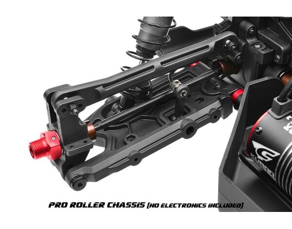 • Eine solide 8-mm-Aluminium-Aufhängung, die mit acht 4-mm-Schrauben sicher verankert ist und über einstellbare Vorspurmodule verfügt.