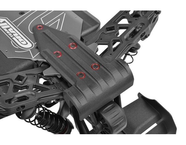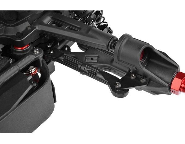 Der Kagama-4 wurde entwickelt, um mit seinem hochentwickelten Fahrwerkssystem jedes Gelände zu bezwingen. Mit den bewährten Komponenten des Radix6 und des Sketer sowie den robusten, breiten Lenkungsblöcken und den hinteren Radträgern des Kagama garantiert dieser Truck eine erstklassige Leistung. Neue Komposit-Dämpferbrücken in Verbindung mit 4mm CNC-gefrästen Querlenkerhaltern und präzisionsgefertigten Anlenkungen sorgen für ein ideales Gleichgewicht aus Haltbarkeit und Leistung. Die hochbelastbaren Komposit-Stoßdämpfer mit großer Bohrung ermöglichen es dem Kagama-4, jedes Terrain mit Leichtigkeit zu bewältigen!