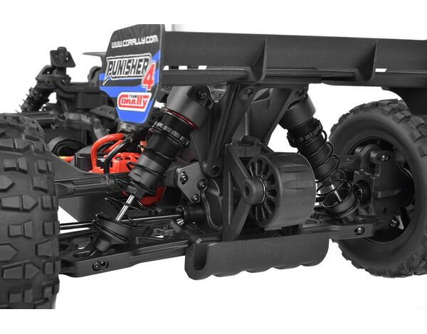 Während der Punisher4 bereit zum Erobern ist, bietet Team Corally eine Reihe von Tuningteilen für diejenigen an, die seine Leistung noch weiter steigern wollen. Sein geringes Gewicht, sein reaktionsschnelles Handling und seine hohen Geschwindigkeiten machen den Punisher4 zu einem Traum, den man sofort nach dem Auspacken fahren kann.