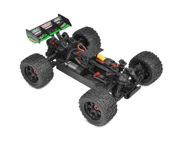 Das Herzstück des Punisher4 ist der leistungsstarke Kuron 725 4-polige, 2150kv sensorlose bürstenlose Motor, gepaart mit der Torox 135 Electronic Speed Control. Diese Kombination liefert aufregende Leistung und erreicht mit 4S LiPo-Akkus Geschwindigkeiten von über 80 km/h. Das digitale High-Speed-Servo HV7225 mit robustem Metallgetriebe und 25 kg Drehmoment sorgt für eine präzise Lenkung.