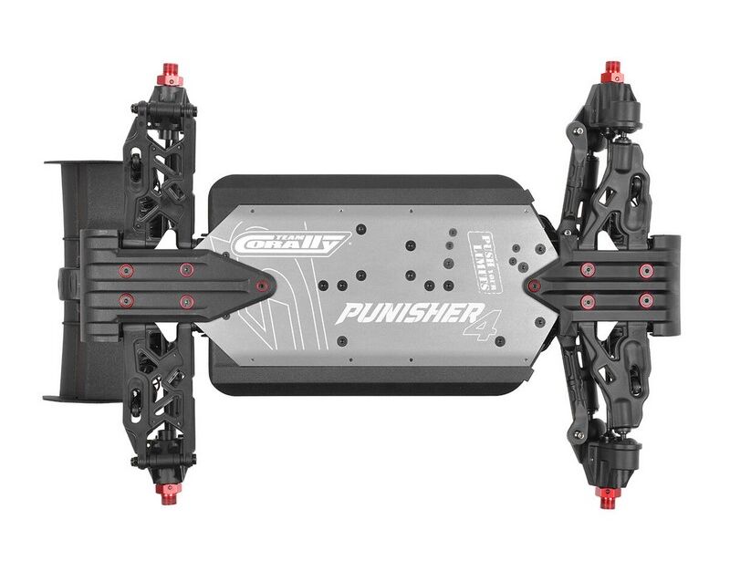 Während der Punisher4 bereit zum Erobern ist, bietet Team Corally eine Reihe von Tuningteilen für diejenigen an, die seine Leistung noch weiter steigern wollen. Sein geringes Gewicht, sein reaktionsschnelles Handling und seine hohen Geschwindigkeiten machen den Punisher4 zu einem Traum, den man sofort nach dem Auspacken fahren kann.