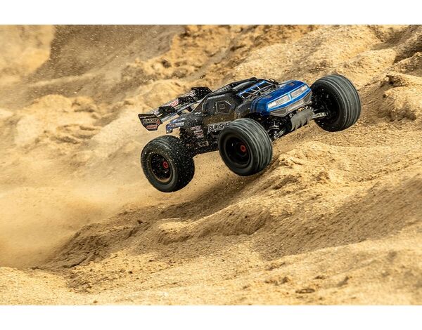 Der Punisher4, ein Monstertruck im Maßstab 1:10, ist sowohl für Anfänger als auch für erfahrene Basher konzipiert. Er basiert auf dem gleichen Chassis wie der Syncro4 und bietet innovative Funktionen zu einem unschlagbaren Preis. Die neuen Big-Bore-Dämpfer aus Verbundwerkstoff mit Gewinde, die extremen Stoßdämpferbrücken aus Verbundwerkstoff und das neue Chassis-Versteifungssystem stehen für die perfekte Mischung aus Haltbarkeit, Leistung und Wert. Mit seinem auffälligen titanfarbenen Aluminiumchassis, den Unterfahrschutzplatten, der neuen Wheelie-Bar und dem aerodynamischen Flügel definiert der Punisher4 den Off-Road-Stil neu.
