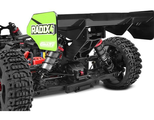 Die Radix 4 XP RTR ist eine innovative, langlebige Mehrzweck-Geländemaschine! Wenn Sie die erstaunliche Leistung und das messerscharfe Handling geniessen, die nur 1/8 Buggys auf Strecken, Bash-Spots oder Skateparks liefern können, dann sind Sie beim Radix 4 XP genau richtig!