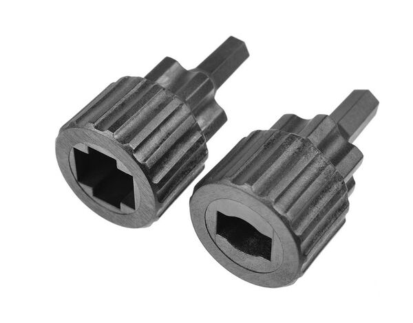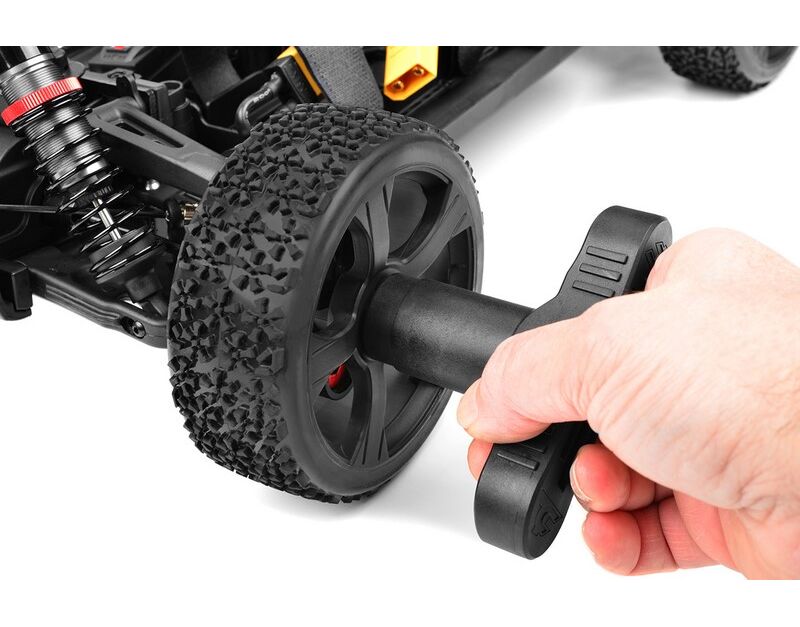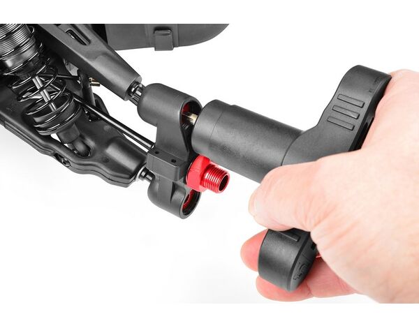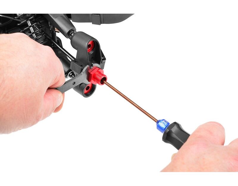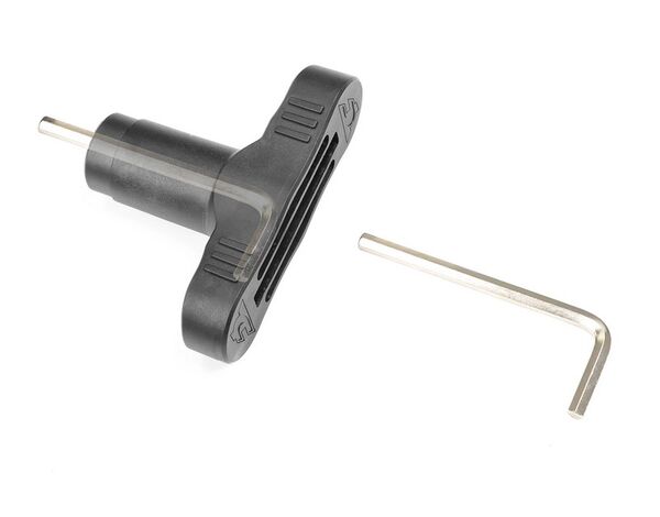 Montieren, justieren oder entfernen Sie die Kugelgelenke der Aufhängung mit dem 5 mm Inbusschlüssel, der von dem geformten Radmutterwerkzeug gehalten wird