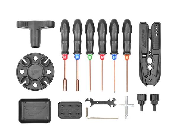 Profitieren Sie vom Preis-Leistungs-Verhältnis des neuen, innovativen 16-teiligen RC-Werkzeugsets von Team Corally. Perfekt für die Wartung, Reparatur oder individuelle Anpassung Ihres Fahrzeugs, kommt dieses umfassende Set komplett mit einem kompakten, überallhin mitnehmbaren Transporttasche. Es ist das einzige Werkzeugset, das Sie jemals brauchen werden!