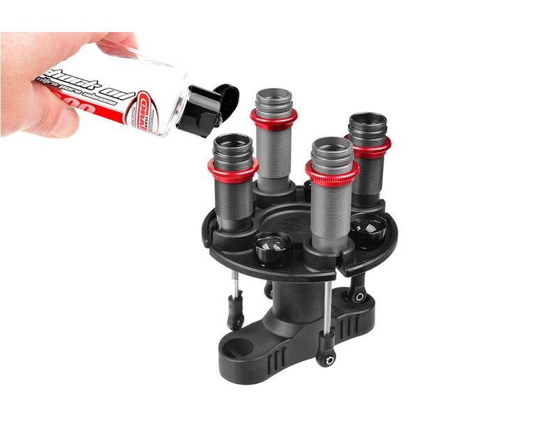 Reparieren und Befüllen von Stoßdämpfern mit der innovativen Stoßdämpferablage, die auf dem Radmutternwerkzeug installiert ist