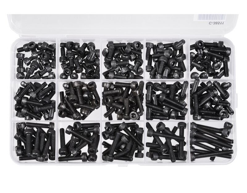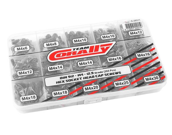 Team Corally - Screw Set M4 - Hex Socket Head - DIN912 - Steel Black - 12.9 Grade - 15 Sizes - 265 pcs