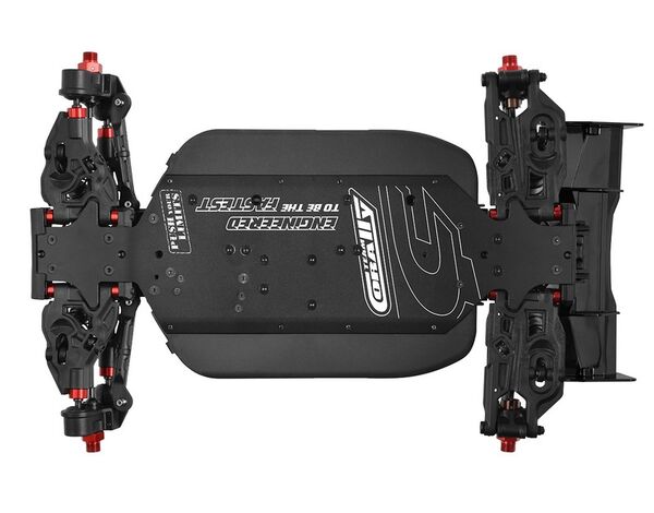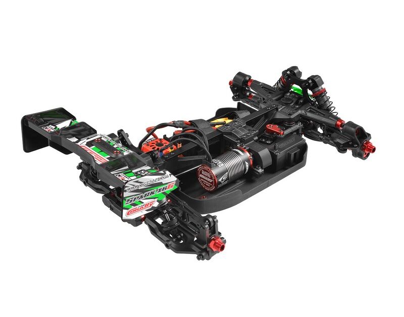 Der Antriebsstrang des Spark verfügt über ein Hauptzahnrad aus gehärtetem Stahl, ein Motorritzel und abgedichtete, mit Silikonöl gefüllte Metalldifferentiale. Das Aluminium-/Stahl-Zentraldifferential bietet zusammen mit dem schnellen und einfachen Differential-Zugang unvergleichlichen Komfort und Leistung. Mit seiner einstellbaren Motorhalterung aus Aluminium, dem 46-Zähne-Stahl-Hauptzahnrad, den gehärteten Stahl-Antriebsteilen und den vorderen CVD-Gelenken ist der Spark auf Langlebigkeit ausgelegt. Die ölgefüllten 16-mm-Aluminium-Big-Bore-Stoßdämpfer mit Gewinde, das Verriegelungssystem der Stoßdämpferfedern und die CNC-Aluminium-Stoßdämpferbrücken sorgen für außergewöhnliches Handling und Stabilität.