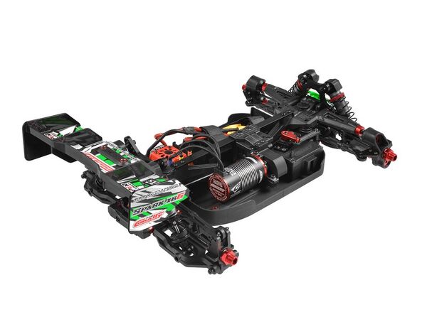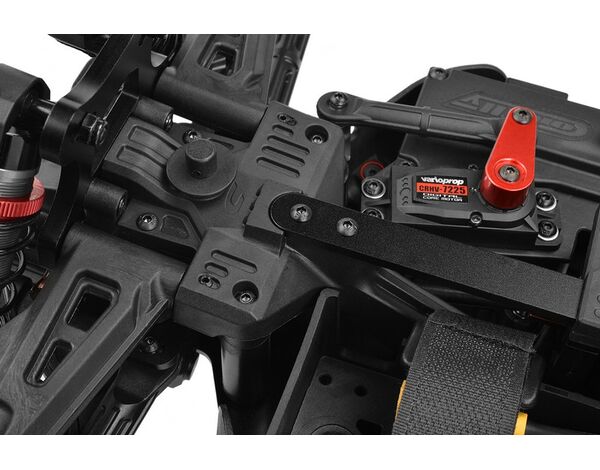 Der Spark verfügt über eine Reihe von Sonderausstattungen, vom Aluminium-Servoarmen über ein einteiliges Lenkgestänge aus Verbundwerkstoff bis hin zu einer Doppeldeck-Lenkungsplatte aus 3mm 7075 Aluminiumvon - dieser Buggy ist auf Präzision ausgelegt.