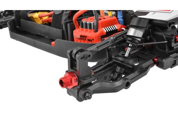 Der mitgelieferte Team Corally Torox 185A 4-6S ESC bietet neben anderen Sicherheits- und Leistungsoptionen auch einen LiPo-Akkuschutz, während der Team Corally Kuron 2050kV 4-Pole Brushless Motor beeindruckende Geschwindigkeit und Drehmoment liefert. Für eine präzise Lenkung sorgt das CRHV-7225-MG Metallgetriebe-Lenkservo. Die komfortable 2,4-GHz-Funkanlage CT2R bietet eine sichere Funkverbindung und einstellbare Funktionen für mehr Fahrkomfort.