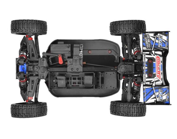 Der mitgelieferte Team Corally Torox 185A 4-6S ESC bietet neben anderen Sicherheits- und Leistungsoptionen auch einen LiPo-Akkuschutz, während der Team Corally Kuron 2050kV 4-Pole Brushless Motor beeindruckende Geschwindigkeit und Drehmoment liefert. Für eine präzise Lenkung sorgt das CRHV-7225-MG Metallgetriebe-Lenkservo. Die komfortable 2,4-GHz-Funkanlage CT2R bietet eine sichere Funkverbindung und einstellbare Funktionen für mehr Fahrkomfort.