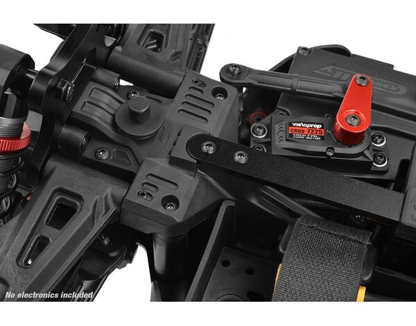 Der Spark verfügt über eine Reihe von Sonderausstattungen, vom Aluminium-Servoarmen über ein einteiliges Lenkgestänge aus Verbundwerkstoff bis hin zu einer Doppeldeck-Lenkungsplatte aus 3mm 7075 Aluminiumvon - dieser Buggy ist auf Präzision ausgelegt.