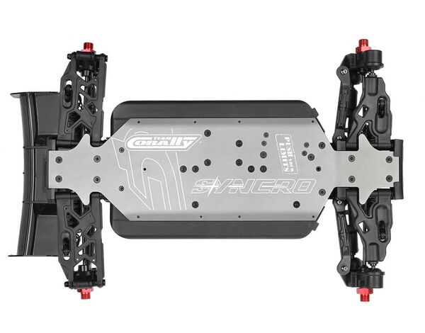 Bei der Entwicklung des Syncro4 hat Team Corally bewährte Komponenten nahtlos mit innovativen Lösungen kombiniert und so eine harmonische Mischung aus Zuverlässigkeit und frischem Design geschaffen. Viele Elemente, wie z.B. die robusten Querlenker, Lenkblöcke und Hinterradnaben, sind von unserer bewährten 6S-Baureihe abgeleitet und bilden eine solide Grundlage. Gleichzeitig sorgen neu gestaltete Stoßdämpfer, Dämpferbrücken und andere wichtige Merkmale für frischen Wind. Besonders hervorzuheben ist, dass Enthusiasten verschiedene Komponenten aus der 6S-Reihe problemlos nachrüsten können, was dem Syncro4-Fahrerlebnis eine zusätzliche Ebene der Vielseitigkeit und Personalisierung verleiht. Im Rahmen unseres Engagements für Innovation haben wir unseren Fokus über die Mechanik hinaus auf die Ästhetik ausgedehnt und markante Merkmale wie ein titanfarben eloxiertes, lasergraviertes Chassis integriert, um sicherzustellen, dass Ihr Syncro4 nicht nur herausragende Leistungen erbringt, sondern sich auch durch seinen Stil auszeichnet.