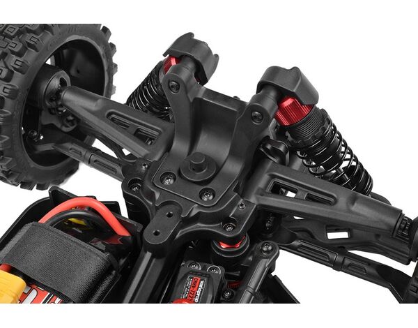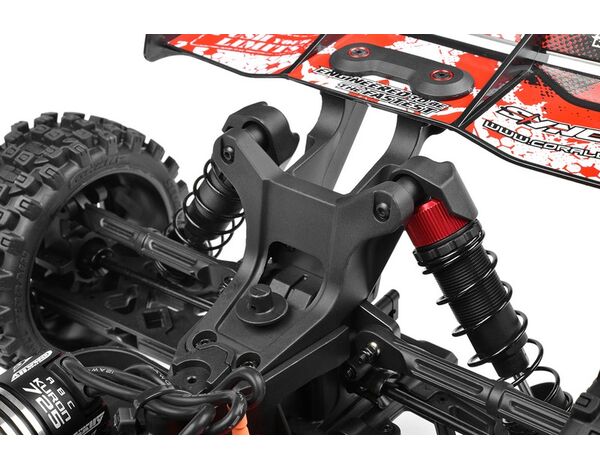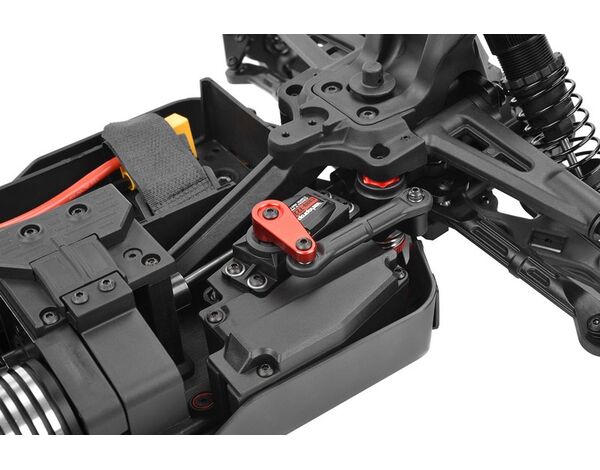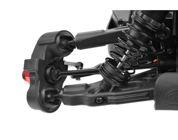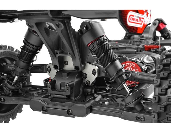 Team Corally macht keine halben Sachen, wenn es um die Radaufhängung des Syncro4 geht. Mit den bekannten und bewährten Querlenkern von Vorgängermodellen wie dem Radix6 und dem Sketer sowie robusten Lenkblöcken und hinteren Radträgern bietet der Syncro4 auf jedem Terrain eine erstklassige Performance. Mit den vom Spark XB6 bekannten, CNC-gefrästen Querlenkerhaltern und präzisionsgefertigten Anlenkungen (Lenkungsstreben, Servo und hintere obere Querlenker) bleibt der Syncro4 seinem Anspruch auf Langlebigkeit und unvergleichlicher Leistung treu. Auch mit der Einführung neuer Kunststoffdämpfer und -träger bleibt Team Corally bei der bei der Ausstattung mit einem Aufhängungssystems, das keine Kompromisse bei Qualität, Haltbarkeit oder Leistung eingeht.