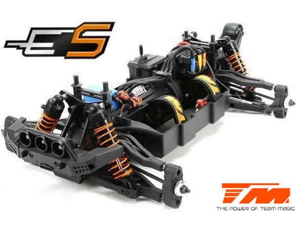 Das Team Magic E5 Fahrgestell verfügt über einen Multi-Anschluss-Stecker welcher die Möglichkeit gibt, die Elektronik schneller zu wechseln. Weniger Kabelsalat im Modell dank Kabel-Tunnel. Ihre 2-3s Akkus werden durch eine Schnellwechselakkuhalterung befestigt.
