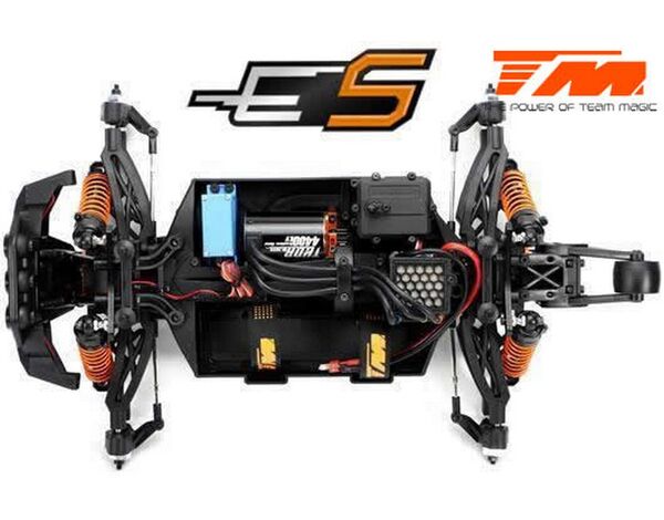 Um den Team Magic E5 zu schaffen, haben mit der Idee begonnen einen 1:8 Monster Truck in Klein zu konstruieren. Wir haben die Widerstandsfähigkeit und die Kraft eines 1:8 Monster Trucks mit der Agilität und Beschleunigung sowie dem schnellen Handling eines 1:10 Modells kombiniert. Wir haben zudem einige neue Besonderheiten hinzugefügt.