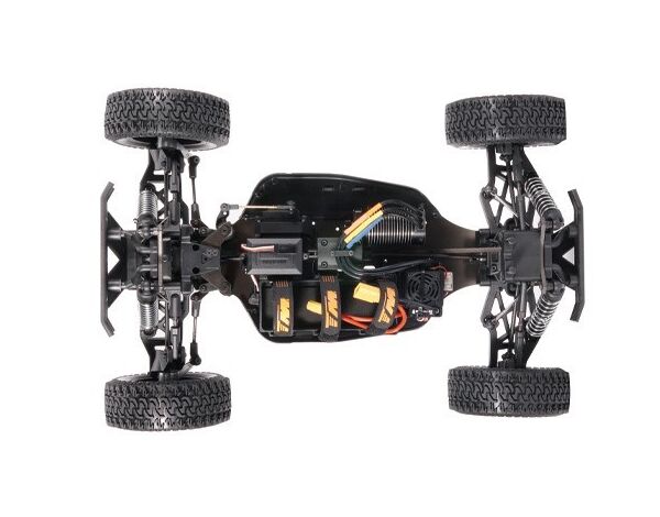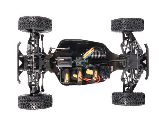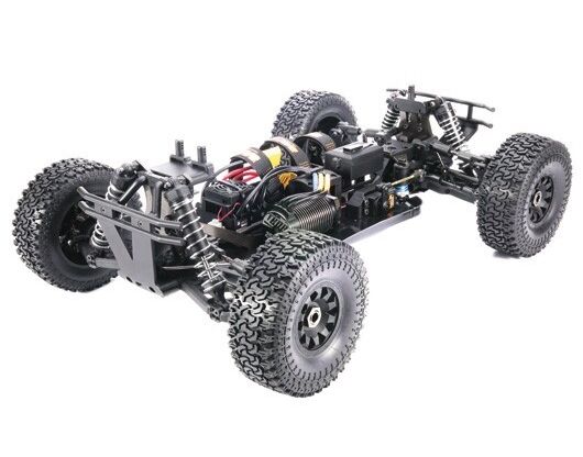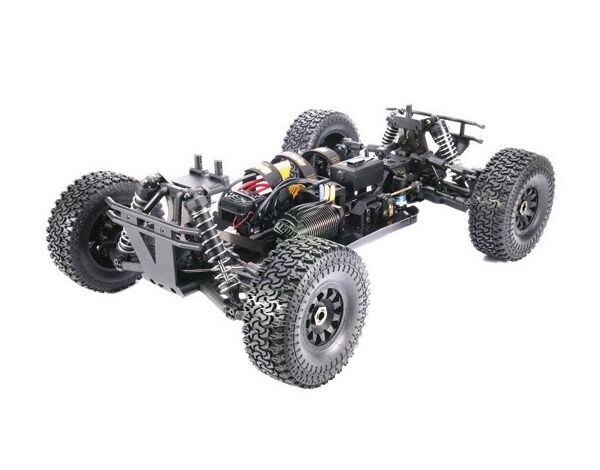 Es beinhaltet drei Differentialgetriebe, die mit CNC-gefrästen Kegelrädern ausgestattet sind, um die Kräfte aufzunehmen und eine perfekte Kraftverteilung für jedes Rad zu gewährleisten. Dazu gehören Aluminium Stossdämpferbrücken und Aluminium-Stoßdämpfer. Chassis-Versteifungen reduzieren das Optimieren des Chassis. Inklusive Überrollbügel für weniger Chassis-Rollen und verstellbare Gewindestangen für eine einfache Einstellung. Flexible Stoßfänger vorne und hinten helfen, Stöße zu absorbieren und bieten zusätzlichen Schutz.