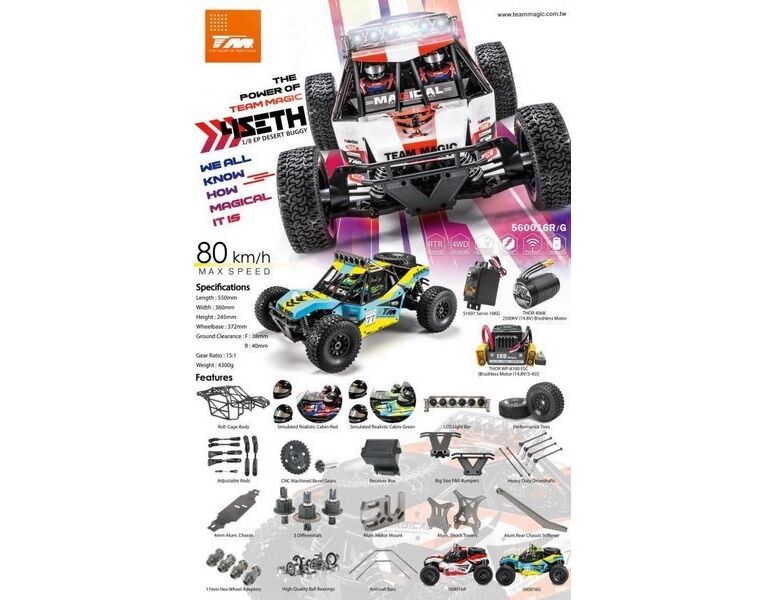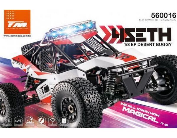 TM560016R-A Auto - 1/8 Elektrisch - 4WD Desert Truck - RTR - 2500kv Brushless Motor - 3-4S - Wasserdicht - Team Magic 4SETH Rot/Schwarz XT90 Stecker