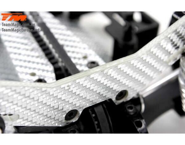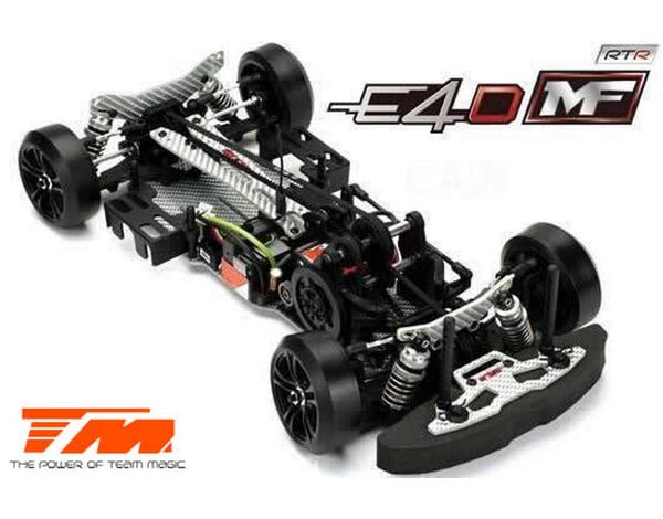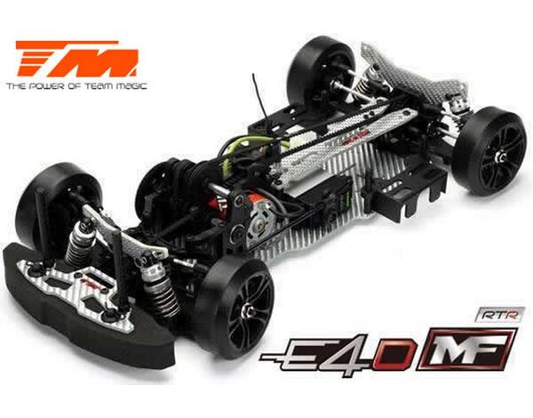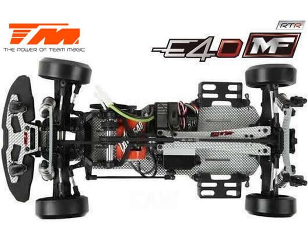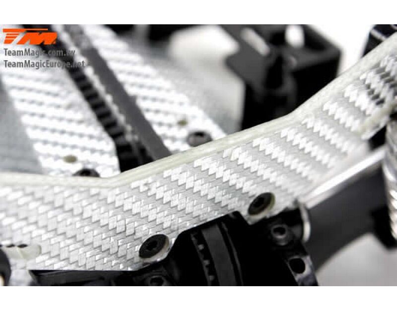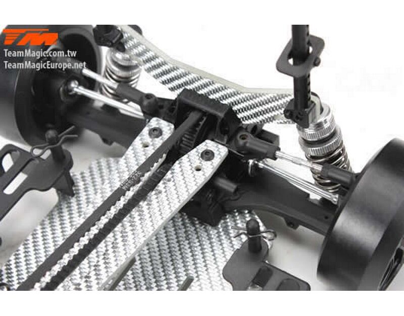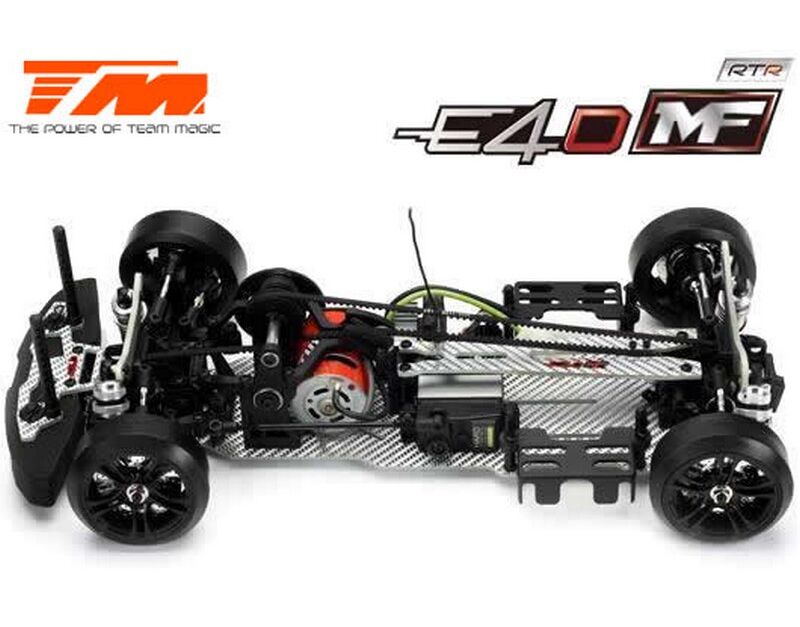 Werde ein Pro Drift Pilot mit dem Team Magic E4D-MF! Das Team Magic E4D-MF Design bietet eine perfekte Gewichtsbalance für bessere Kontrolle. Das Team Magic E4D-MF Drift Auto ist mit speziellen CVD-Antriebswellen vorne ausgestattet, um die Lenkgeschwindigkeit zu erhöhen. Das Modell bietet auch Countersteer-Option im Getriebe-Center, um individuelle Drehzahl vorne oder hinten einzustellen. Das untere und obere Deck besteht aus strapazierfähigem Silberfasermaterial. Es ist komplett mit Kugellagern für freies Rollen ausgestattet. Die Karrosserie besteht aus robustem Polycarbonat (Lexan) und enthält Leuchteimer, um LED-Leuchten zu installieren.