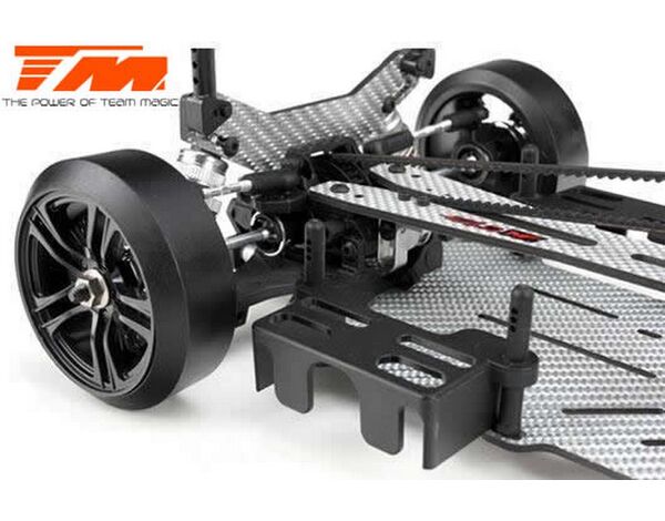 Werde ein Pro Drift Pilot mit dem Team Magic E4D-MF! Das Team Magic E4D-MF Design bietet eine perfekte Gewichtsbalance für bessere Kontrolle. Das Team Magic E4D-MF Drift Auto ist mit speziellen CVD-Antriebswellen vorne ausgestattet, um die Lenkgeschwindigkeit zu erhöhen. Das Modell bietet auch Countersteer-Option im Getriebe-Center, um individuelle Drehzahl vorne oder hinten einzustellen. Das untere und obere Deck besteht aus strapazierfähigem Silberfasermaterial. Es ist komplett mit Kugellagern für freies Rollen ausgestattet. Die Karrosserie besteht aus robustem Polycarbonat (Lexan) und enthält Leuchteimer, um LED-Leuchten zu installieren.