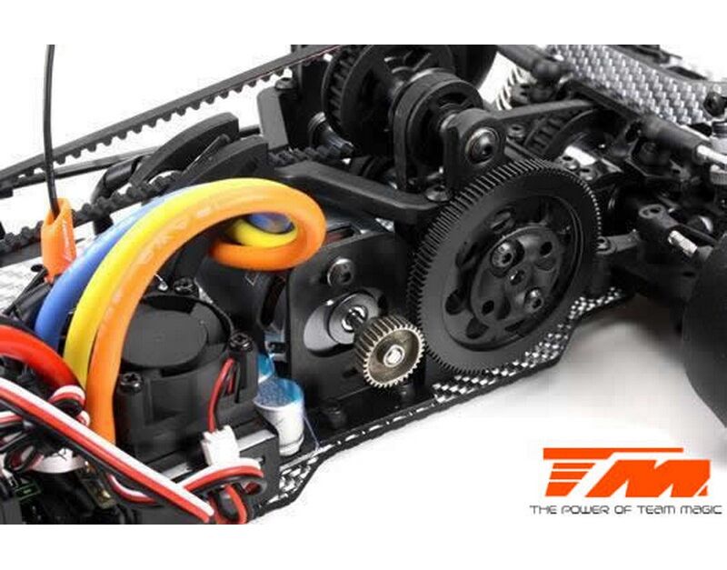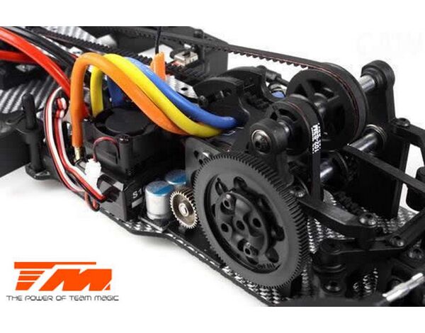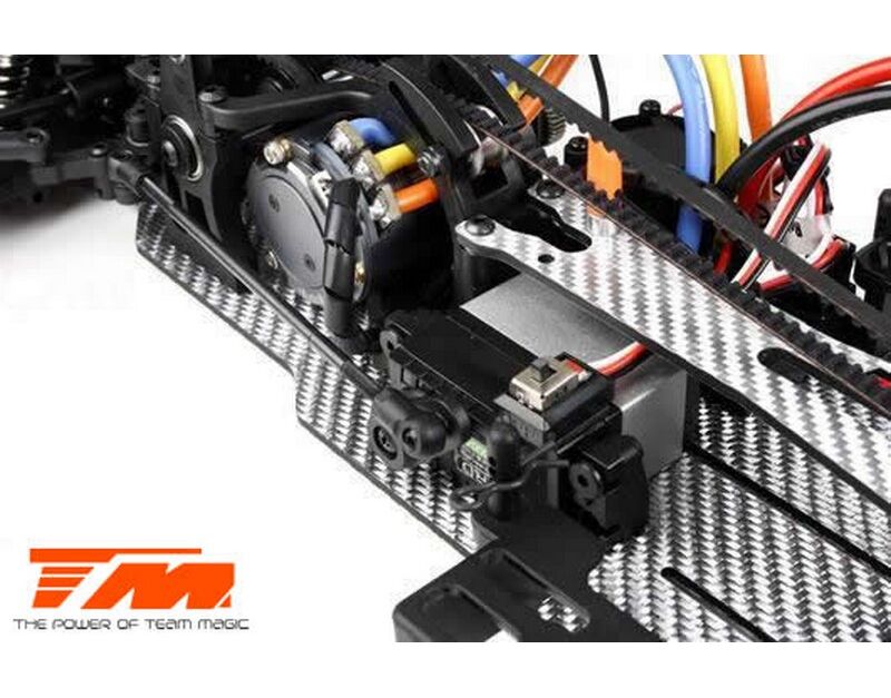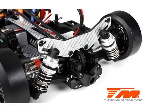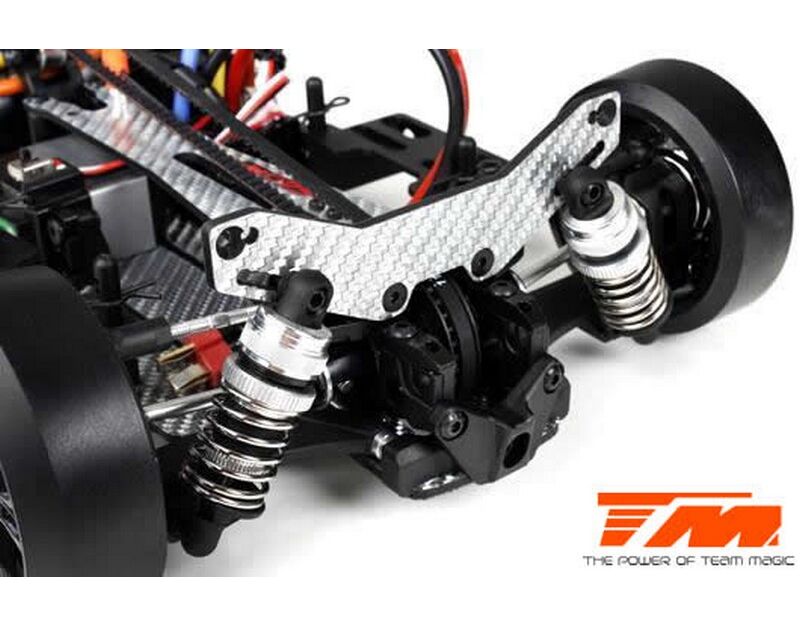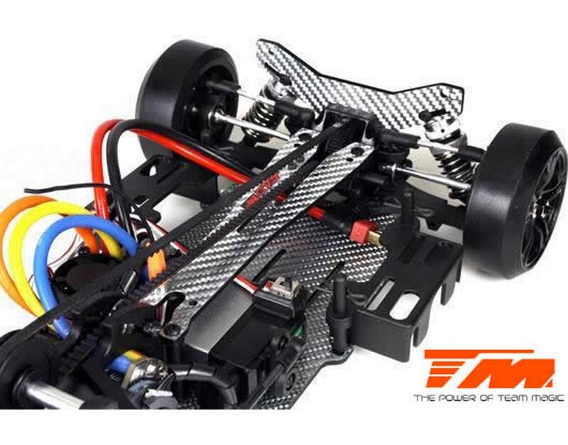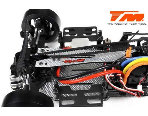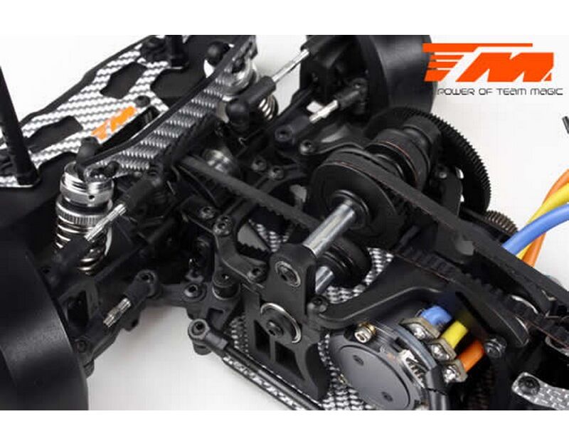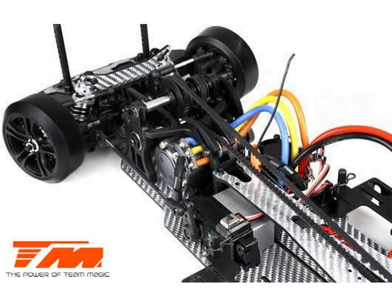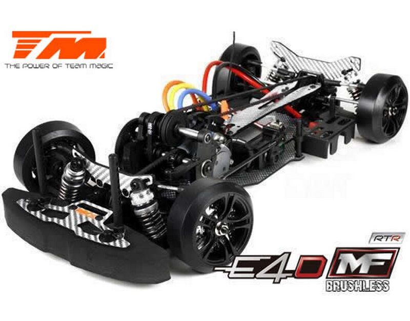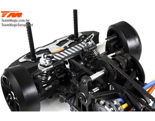 Werde ein Pro Drift Pilot mit dem Team Magic E4D-MF! Das Team Magic E4D-MF Design bietet eine perfekte Gewichtsbalance für bessere Kontrolle. Das Team Magic E4D-MF Drift Auto ist mit speziellen CVD-Antriebswellen vorne ausgestattet, um die Lenkgeschwindigkeit zu erhöhen. Das Modell bietet auch Countersteer-Option im Getriebe-Center, um individuelle Drehzahl vorne oder hinten einzustellen. Das untere und obere Deck besteht aus strapazierfähigem Silberfasermaterial. Es ist komplett mit Kugellagern für freies Rollen ausgestattet. Die Karrosserie besteht aus robustem Polycarbonat (Lexan) und enthält Leuchteimer, um LED-Leuchten zu installieren.