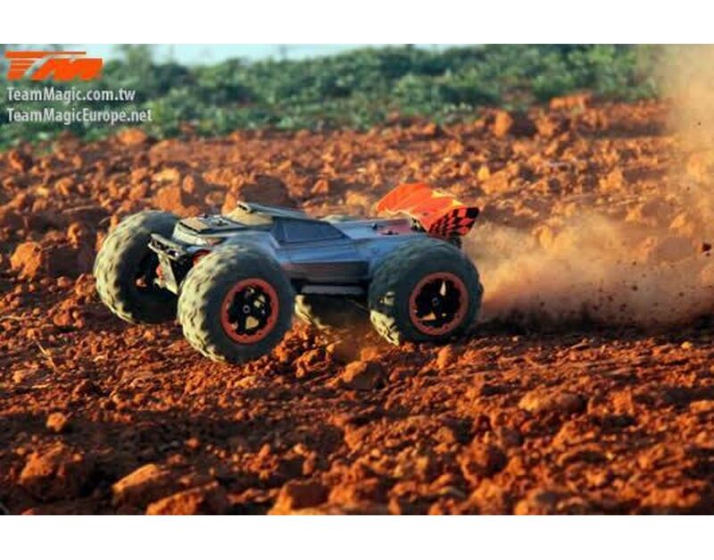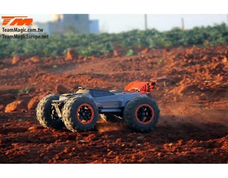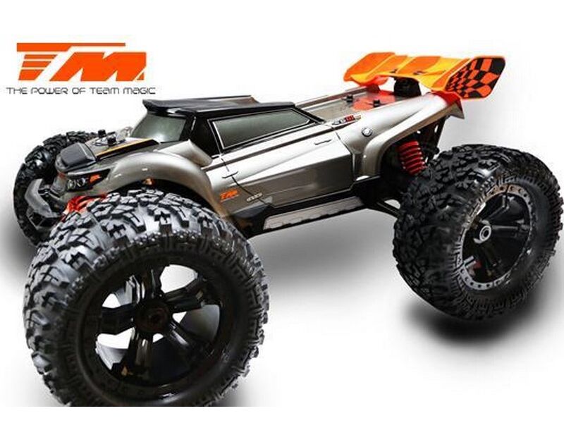 Der Team Magic E6III HX ist der ultimative Monstertruck aus dem Hause Team Magic. Schneller grösser, agressiver. Mit Backflips auf Kommando und Geschwindigkeiten von bis zu 100km/h können Sie sich sehen lassen. Geschlossenes Getriebe, ganzteilige Tuning CVD Stahl-Antriebswellen und symetrische Schwingen auf allen 4 Achsen sowie Hobbywing Elektronik im Herzen machen diesen Truck zu einer beeindruckenden Kampfmaschine.