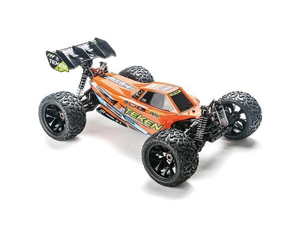 Der allradgetriebene TEKEN Truggy von Team Magic im Maßstab 1:8 XL wird von einem wasserdichten elektronischen 100A-Regler in Kombination mit einem 2500 KV High-Speed-Motor angetrieben. Ein 16 kg schweres Metallzahnradservo sorgt für die stärkste Lenkung. Alle elektronischen Komponenten sind wasserdicht (spritzwassergeschützt).