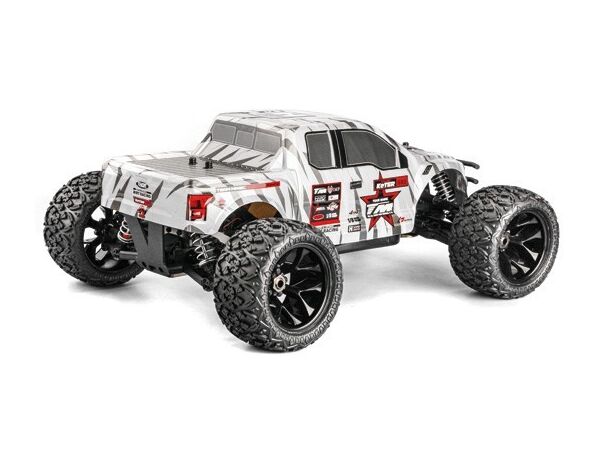 KETER, der kraftvolle Ranger, der die Richtung vorgibt! Dieser Pickup-Truck mit 4-Rad-Antrieb im Maßstab 1:8 wird von einem wasserdichten elektronischen Regler mit 100 A und einem Hochgeschwindigkeitsmotor mit 2500 KV angetrieben. Ein 16kg starkes Metallzahnradservo sorgt für die kräftige Lenkung. Alle elektronischen Komponenten sind wasserdicht (spritzwassergeschützt). Die Karosserie im UCP-Design ist nicht nur ein echter Hingucker, sondern fühlt sich auch gut an! Das Chassis ist aus 4mm starkem und ultraleichtem Aluminium gefertigt. Es verfügt über drei Differentiale, die mit CNC-gefrästen Kegelrädern ausgestattet sind, um die Kräfte zu bewältigen und eine perfekte Kraftverteilung auf die Räder zu gewährleisten. Die Aluminium-Stoßdämpferbrücken halten die 4 Stoßdämpfer perfekt. Der KETER Truck verfügt über Chassisversteifungen, die die Verwindung des Chassis reduzieren. Große und flexible vordere und hintere Stoßstangen helfen, Stöße von holprigen Straßen zu absorbieren und bieten zusätzlichen Schutz. Hochleistungs-Geländereifen bieten eine bessere Traktionskontrolle und eine längere Lebensdauer. Egal, ob Sie fahren oder springen, der KETER Truck ist immer vorne mit dabei!
