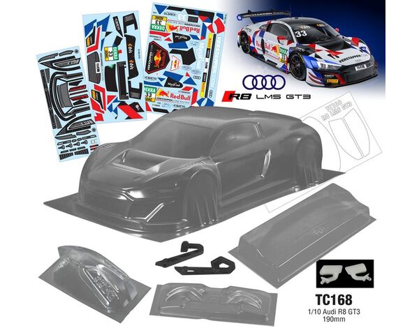 TeamC 1/10 Audi R8 GT3 LMS 190mm Karosserie inkl. Anbauteile RB Stickerset