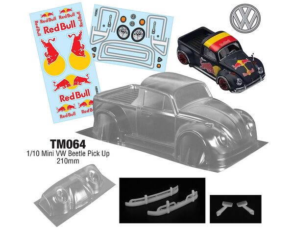 PL-TM064RB TeamC 1/10 Mini VW Beetle Radstand 210mm Karosserie M-CHASSIS Red Bull Sticker