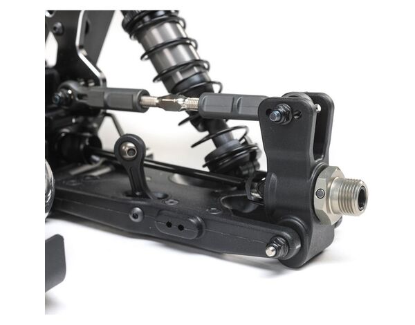 Die Lenkstange ermöglicht mehr Ackerman-Anpassungen und einen verbesserten Servo-Saver, um die Performance bei hohen Lasten zu verbessern. Außerdem bewegten sich die hinteren Befestigungspunkte nach innen und hinten, sodass die Lenkstange für ein lineareres Lenkgefühl zurückverlegt werden konnte.