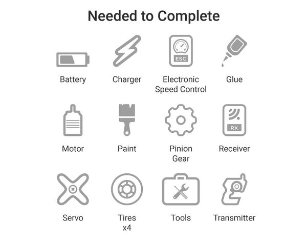Alle Teile, die für den Betrieb mit Nitro oder Elektro benötigt werden, sind in einer Box enthalten.