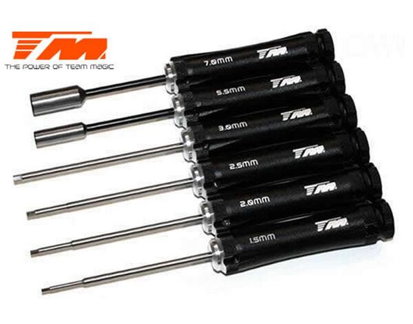 TM117059 Team Magic Tool Set - TM Black Magic RC - 1.5 / 2 / 2.5 / 3mm HEX screwdrivers and 5.5 / 7.0 socket drivers
