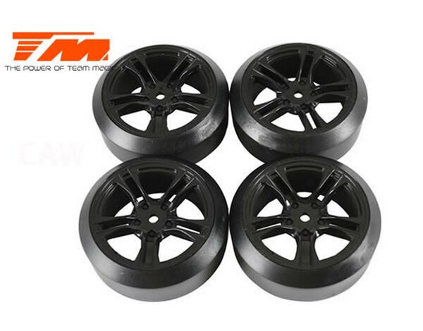 TM503390BK Team Magic Tires - 1/10 Drift - mounted - 5 Spoke Black wheels - 12mm Hex - 45° - Hard (4 pcs)