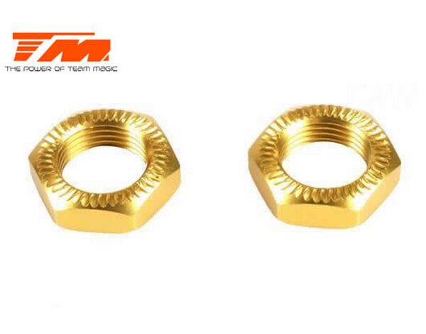 TM505138SGD-1 Team Magic Ersatzteil - E6 III - Aluminium Gold eloxiert - Serrated Radmuttern (2 Stk.)