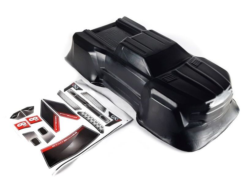 TMT Karosserie unbreakable schwarz inkl. Sticker für ARRMA Kraton 8S (Karosserie ist nicht ausgeschnitten / Gebohrt)
