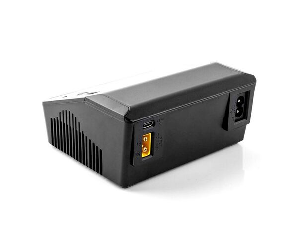 Das M6DAC ist ein Zweikanal-Ladegerät mit einigen hilfreichen Funktionen zum Entladen, zyklischen Laden und generellem Einstellen. Aufgrund der speziellen Bauweise ist der Lader in der Lage zwei Akkus nicht nur einfach mit neuer Energie zu versorgen. Dieser Ladevorgang kann mit dem M6DAC sowohl synchron als auch asynchron stattfinden und genau das macht diesen Lader so vielseitig einsetzbar. Das bedeutet, dass wenn z.B. zwei Akkus im synchronen Modus aufgeladen werden, die Ladung gleich läuft und das Ladegerät kann so den maximalen Ladestrom von bis zu 25A erbringen. Im asynchronen Modus werden beide Akkus hingegen separat geladen und daher ist hier auch nur ein Strom von max. 15A möglich. Genießen Sie zusätzlich kurze Ladezeiten dank des 65 Watt Schnelllade-Ausgangs, der u.a. auch viele Mobilgeräte wie Smartphones, Tablets und Laptops unterstützt.