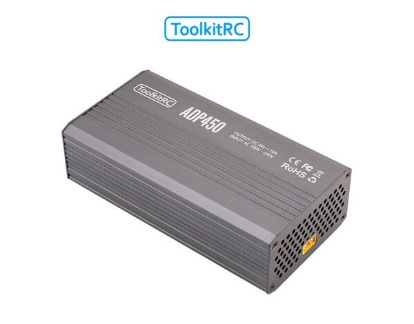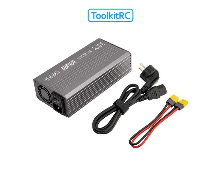 Das ToolkitRC ADP450 ist ein Hochleistungs-Netzteil mit 450 Watt Ausgangsleistung bei 24V und 19A. Besonders geeignet ist das Netzteil in Kombination mit den M8D, M6D, M8P oder M8 Ladegeräten von Toolkit. Mit einem Wirkungsgrad von bis zu 94%, robustem Aluminiumgehäuse und umfassenden Schutzmechanismen bietet dieses Netzteil alles was man sich als RC-Profi oder Techniker wünschen kann!