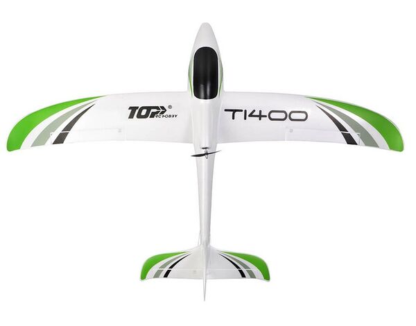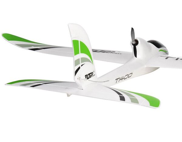 The Top RC T1400 RC glider is made from durable impact-resistant EPO foam material making it durable and lightweight. With a pusher propeller design and great gliding performance, this affordable electric RC glider is perfect for beginners and experienced pilots alike.