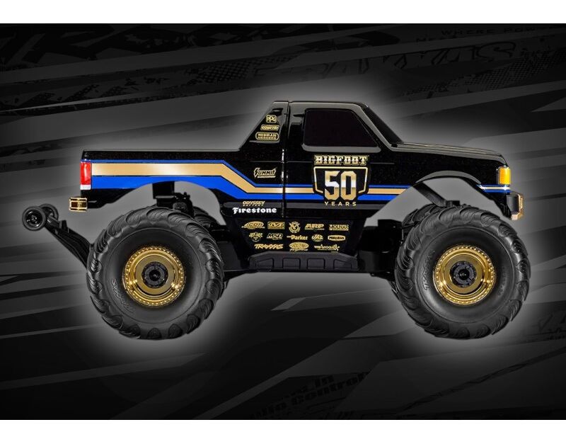 Traxxas Bigfoot 4x4 BL-2S 50 Jahre TH-Edition 1/10 Monster Truck RTR BL-2S Brushless, HD-Teile inkl. Lipo Akku / Ladegerät - Schwarz / Gold