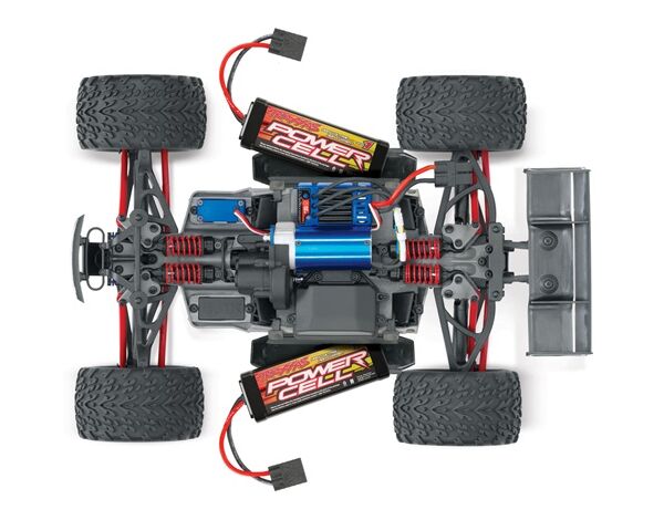 Bestehend aus dem Velineon 380 Brushless Motor und dem VXL-3m Regler macht es den 1/16 E-Revo doppelt so schnell wie die meisten anderen Mini Monstertrucks. Doch damit begnügt sich Traxxas nicht! Fügen Sie einen zweiten 6 Zellen NiMH Akku in den dafür vorgesehenen Akkuschacht, entfaltet sich die gesamte Power! Mit einer Spitzengeschwindigkeit von bis zu 80km/h ist der Kleine damit schneller als die meisten anderen Monstertrucks – egal welcher Größe!