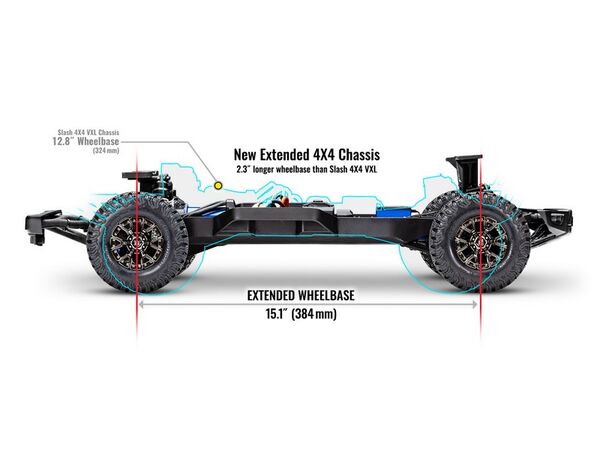• Verlängerter Radstand +58mm gegenüber Slash 4x4 VXL