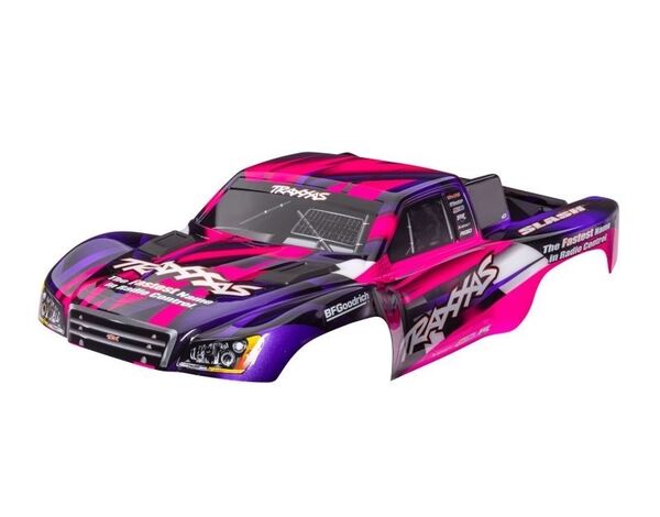 Body, Slash® 2WD (also fits Slash® VXL & Slash® 4X4), pink & purple (painted, decals applied) (assembled with front & rear latches for clipless mounting)