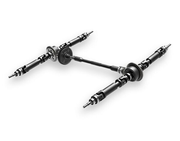Schaftgetriebenes 4WD-System: Vollzeit-Allradantrieb mit robusten Stahlzahnraddifferentialen vorne, hinten und in der Mitte für maximale Traktion.