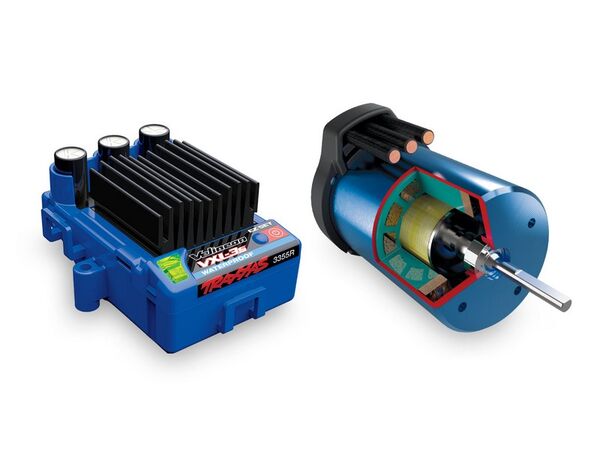 Velineon VXL-3s Brushless-Antrieb: Leistungsstarkes 11,1-Volt-System für explosive Beschleunigung und hohe Endgeschwindigkeit.