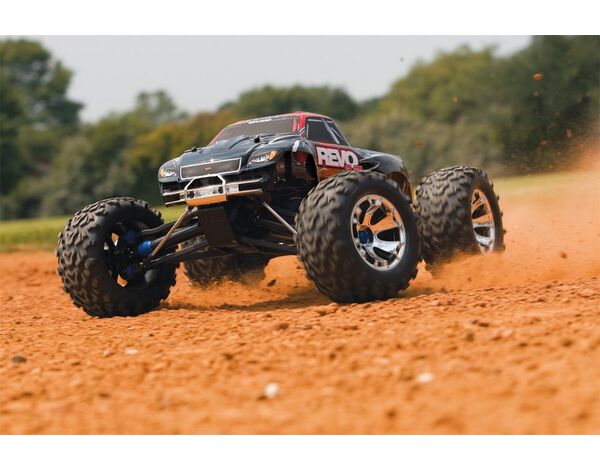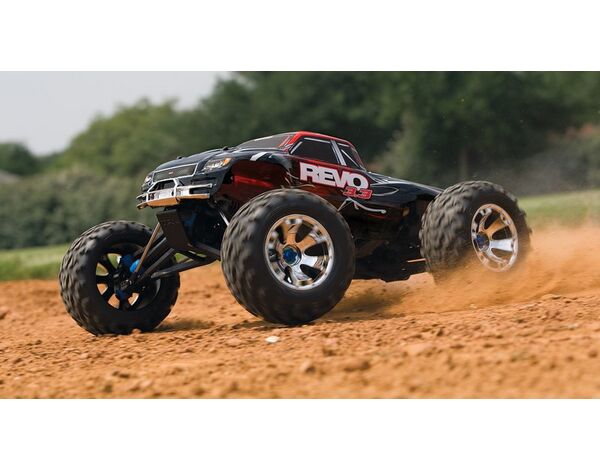 Monster innovation, monster versatility, and supreme size come together in the one truck that could only come from Traxxas. The Revo 3.3 defines what it means to be the pinnacle of monster truck performance, the standard bearer for cutting edge innovation and boundless capability that all others are measured against. The Revo 3.3 is pure monster to its core with its massive presence, meaner gaze, and feature-rich capability. More importantly, Revo's advanced engineering equips it for fun, and the Revo 3.3 delivers even more of it!